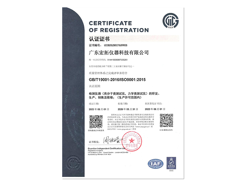 宏拓儀器通過ISO9001:2015質量體系管理認證,通過國家計量測試中心全面質量與性能檢測,獲得國家計量器具型式批準CPA證書,T/SGX 001—2019標準 與T/SGX 007—2019標準起草單位,參于制定的國家標準GB/T43139-2023正式發布,擁有自主知識產權,獲得國家多項實用新型專利證書與發明專利,產品通過歐盟CE認證。