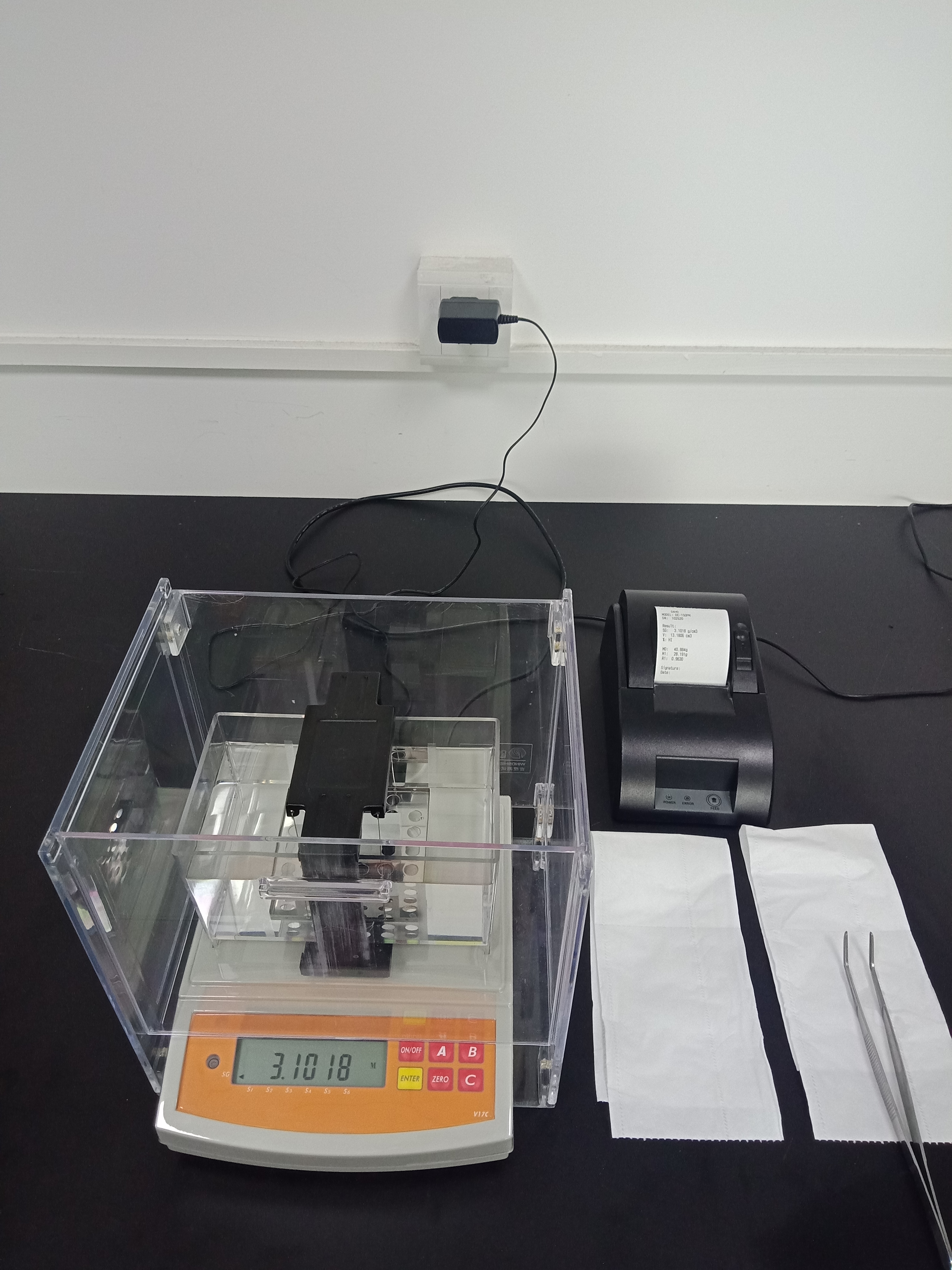 果顯示在屏幕上,并可用打印機打印出來,如圖3顯示,此樣品的密度值是:3.1018g/cm3。