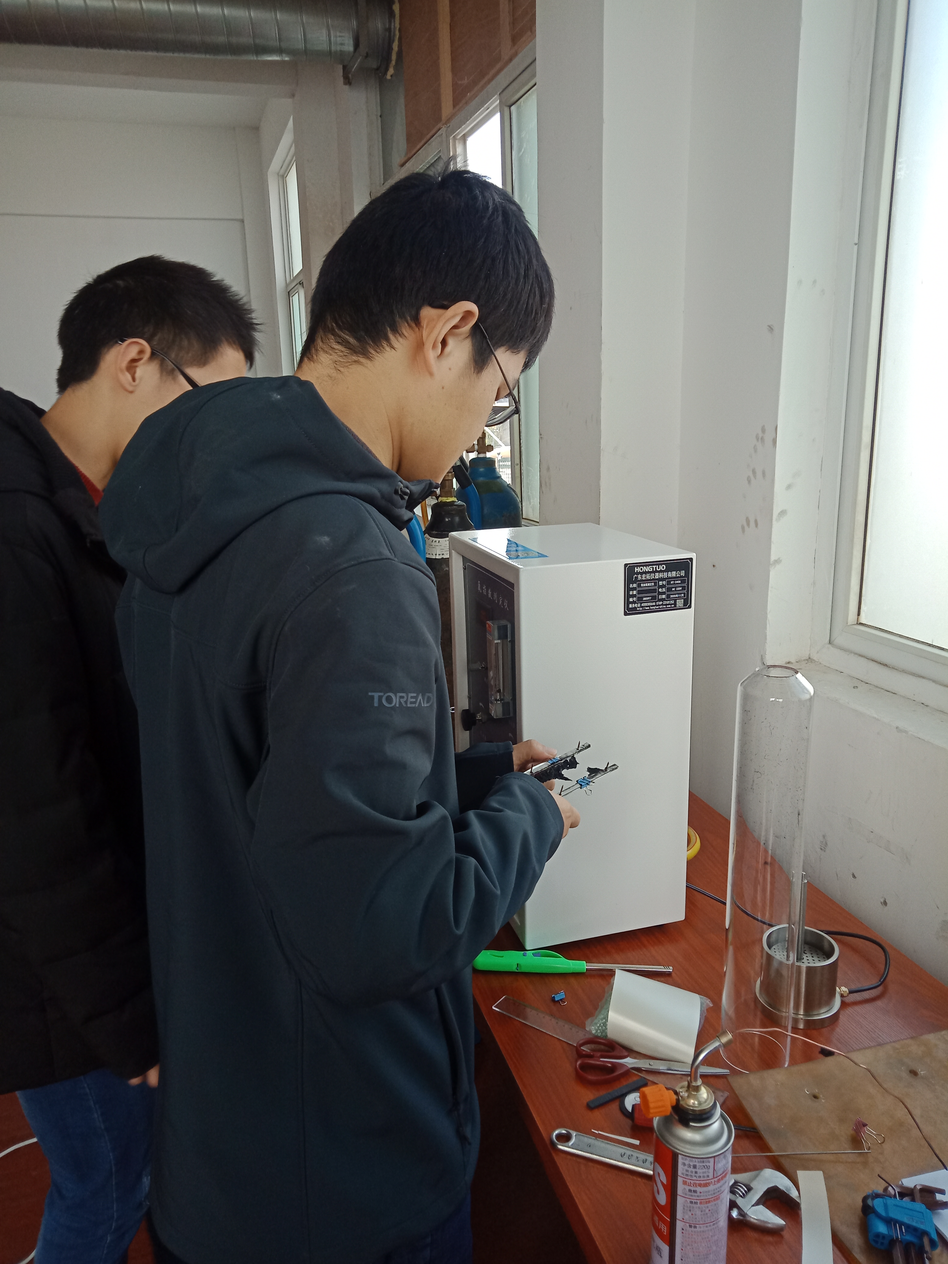 寧波聚嘉實(shí)驗(yàn)室工作人員正在學(xué)習(xí)使用氧指數(shù)測(cè)定儀