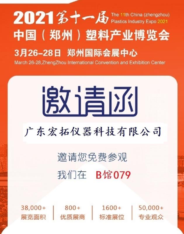 廣東宏拓儀器科技有限公司應(yīng)邀參加2021第十一屆中國(guó)(鄭州)塑料產(chǎn)業(yè)博覽會(huì),該展會(huì)將在3月26日-28日的鄭州國(guó)際會(huì)展中心開(kāi)展,歡迎廣大新老客戶屆時(shí)到位于鄭州國(guó)際會(huì)展中心B館079號(hào)廣東宏拓儀器科技有限公司展位參觀和了解公司參展儀器。
