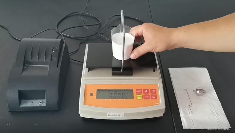 2、在顯示0.000狀態下,將盛有涂料的測量杯放于測量放置板上;