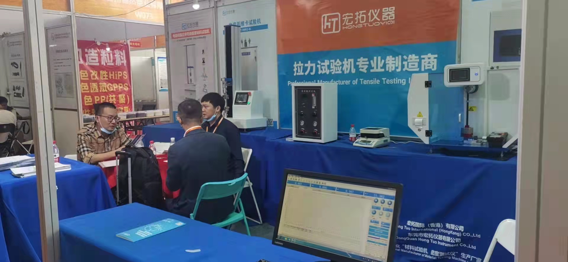 在本次展會(huì)上,廣東宏拓儀器科技有限公司展出了自主生產(chǎn)的拉力試驗(yàn)機(jī),密度測(cè)試儀,高分子材料物性檢測(cè)儀器等企業(yè)工廠試驗(yàn)室標(biāo)配測(cè)試儀器,針對(duì)生產(chǎn)企業(yè)在拉力測(cè)試和物理性能測(cè)試中面臨的需求、效率、成本等問(wèn)題,提供了切實(shí)有效的解決方案。歷時(shí)3天(10月15-18日)的展會(huì),宏拓儀器展臺(tái)吸引了無(wú)數(shù)參展者的駐足,而工作人員也始終以飽滿的熱情、耐心地與參展者溝通,產(chǎn)品的特色和優(yōu)勢(shì)在宏拓儀器工作人員精彩的演說(shuō)及演示下展現(xiàn)得淋漓盡致,會(huì)場(chǎng)上的專業(yè)觀眾及參展企業(yè)對(duì)產(chǎn)品有一定了解之后,對(duì)宏拓儀器所展出的測(cè)試儀器表示了極大的興趣,很多客戶都現(xiàn)場(chǎng)進(jìn)行了詳細(xì)咨詢,希望通過(guò)這次機(jī)會(huì)進(jìn)行深入合作。