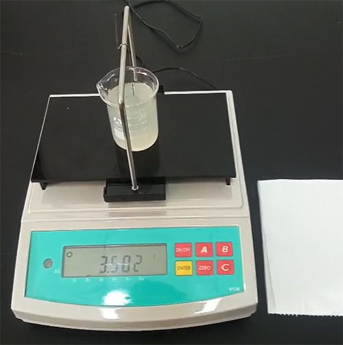 1、準備好一臺水玻璃模數(shù)測試儀DA-300WG,準備樣品。做好儀器準備工作(重量校正和水溫補償)。