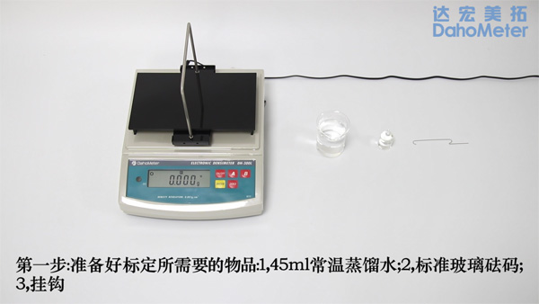 第一步:準備好標定所需要的物品:常溫蒸餾水;標準玻璃砝碼;掛鉤。如圖: