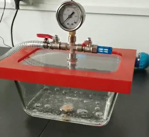 4、將金屬零件樣品放入抽真空設備進行抽真空吸水處理。