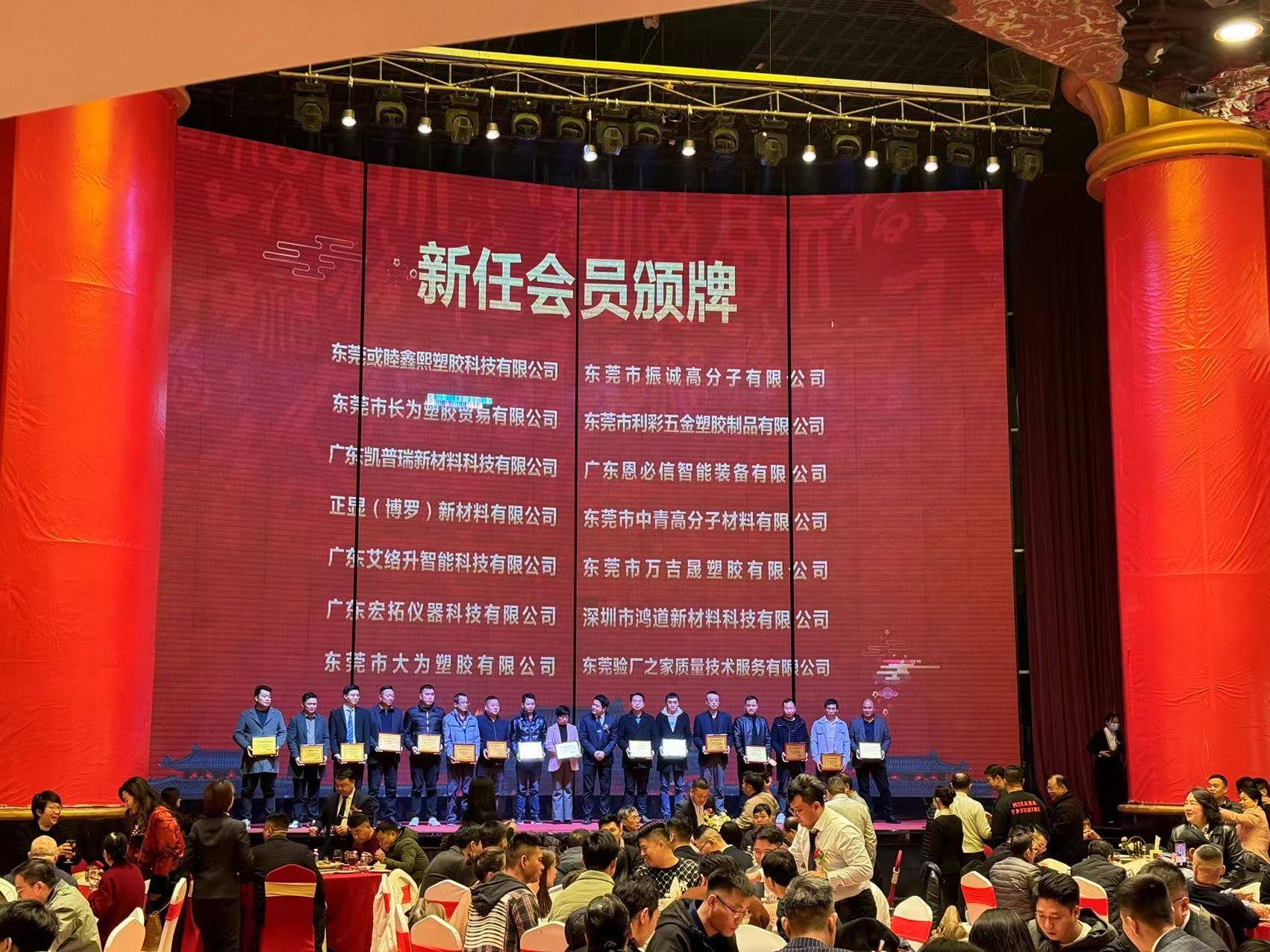 2023年12月21日,由東莞市塑膠產業發展促進會主辦的“深信篤行 同新共贏”2024年迎新春聯誼晚會,在東莞樟木頭半山酒店隆重舉行,廣東宏拓儀器科技有限公司受邀參加,公司總經理鐘總親自出席此次晚會,晚會上東莞市塑膠產業發展促進會對新任會員進行頒獎儀式,由我司總經理鐘總上臺領獎。