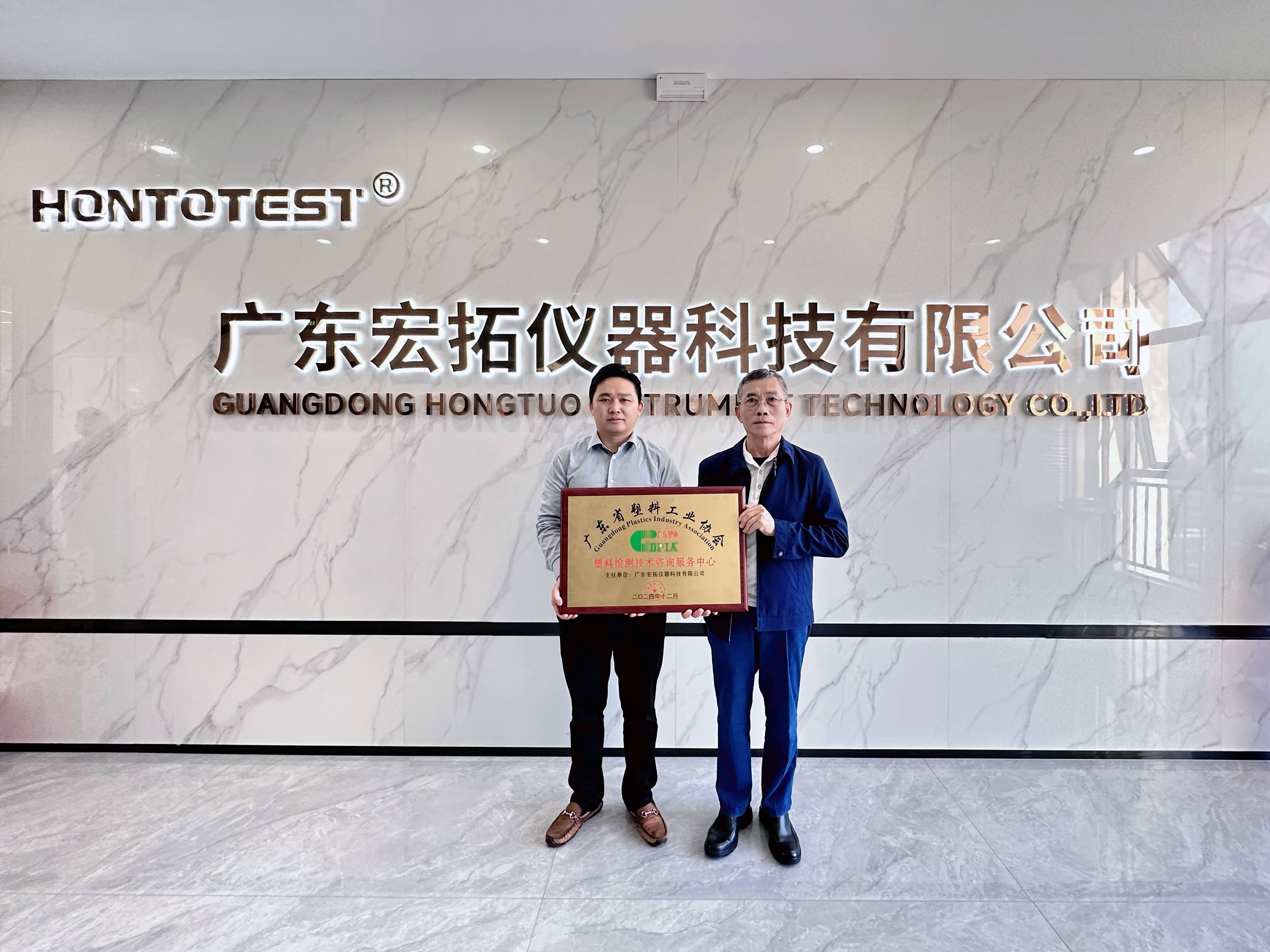 參觀結(jié)束后,接著舉行塑料檢測(cè)技術(shù)咨詢服務(wù)中心的授牌儀式。在簡(jiǎn)短而莊重的儀式上,符岸會(huì)長(zhǎng)親手將“廣東省塑料工業(yè)協(xié)會(huì)塑料檢測(cè)技術(shù)咨詢服務(wù)中心”的牌匾授予宏拓儀器鐘從崗董事長(zhǎng),標(biāo)志著宏拓儀器正式成為協(xié)會(huì)在塑料檢測(cè)技術(shù)咨詢服務(wù)領(lǐng)域的重要支撐力量。這一殊榮不僅是對(duì)宏拓儀器過(guò)往成績(jī)的認(rèn)可,更是對(duì)未來(lái)發(fā)展的期許與信任。