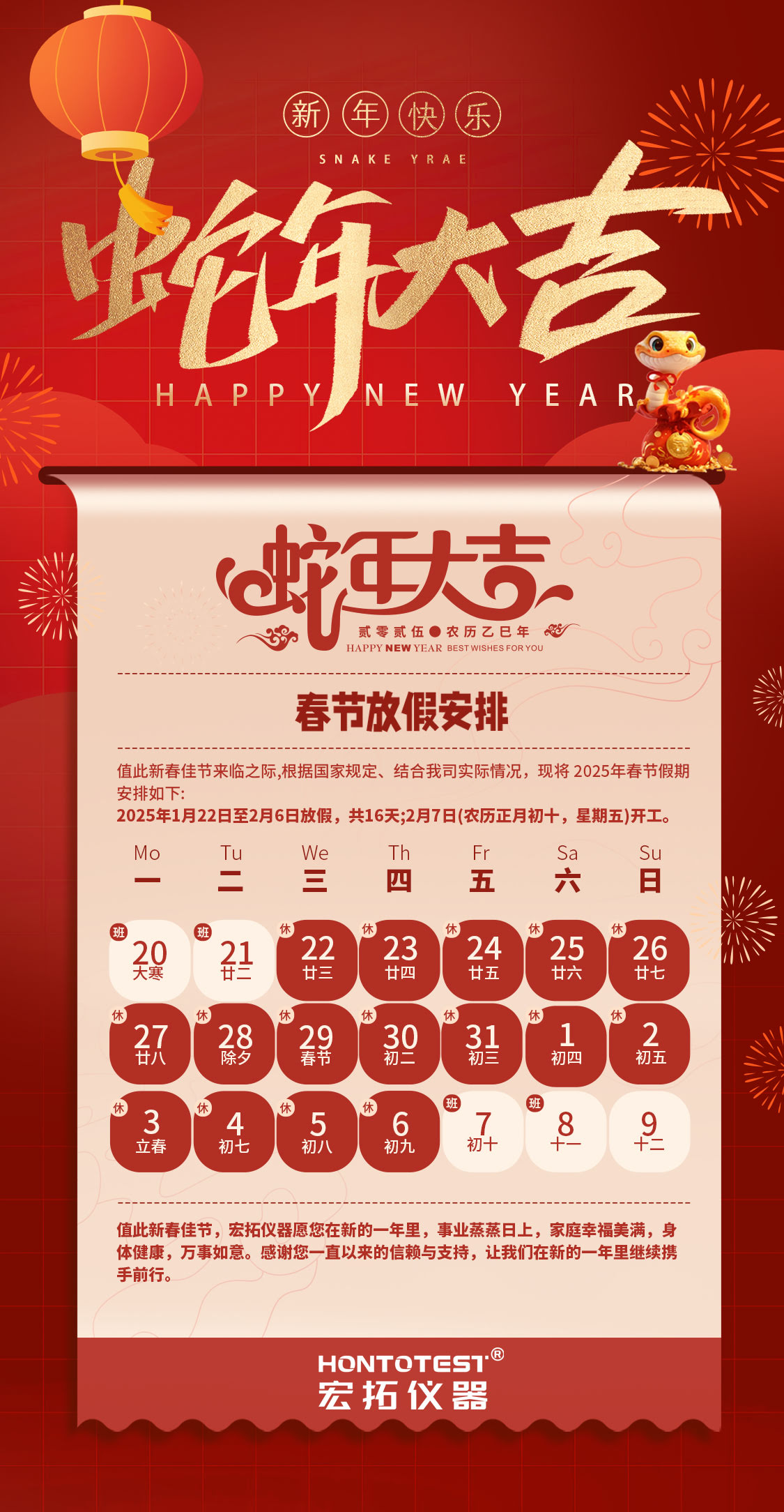 新春佳節將至宏拓儀器全體員工預祝您新春快樂,萬事如意!感謝您一直以來對宏拓儀器的信任與支持!